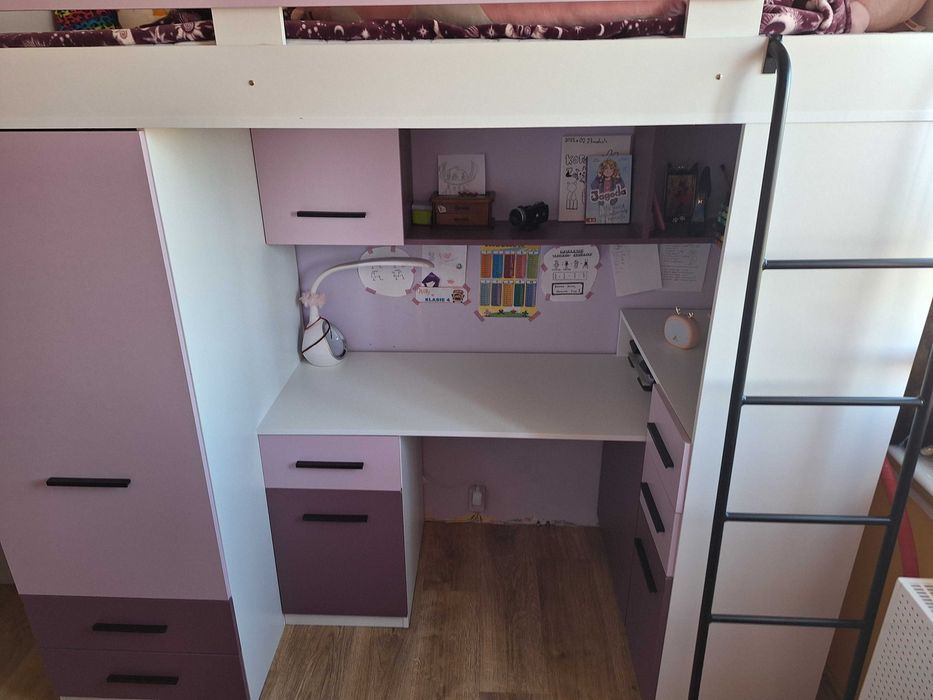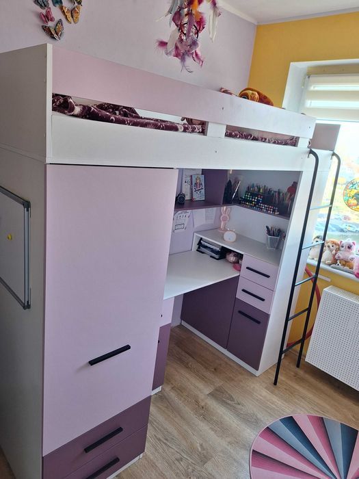Łóżko na antresoli z biurkiem i szafą – idealne dla dziecka lub nastolatka!