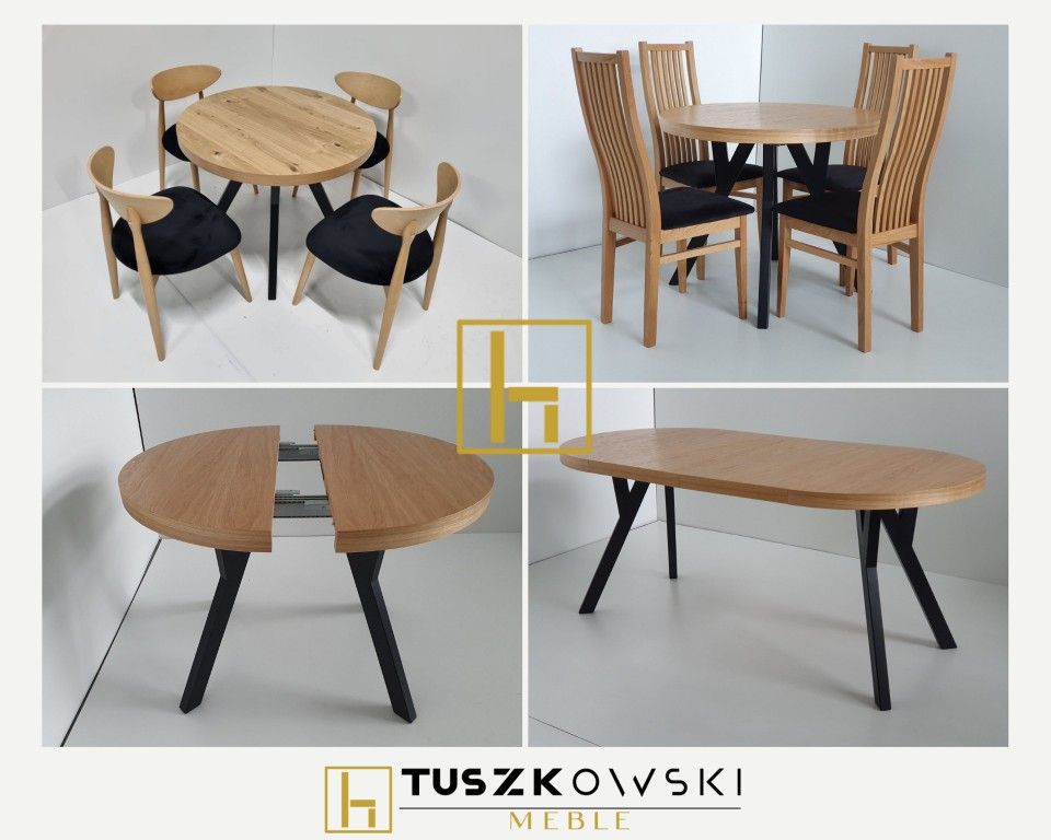 W ofercie Meble Tuszkowski znajdziesz m.in. stoły z masywnymi nogami, niskie komody RTV, krzesła Chesterfield, krzesła tapicerowane z ozdobnymi kołatkami czy stoliki kawowe.